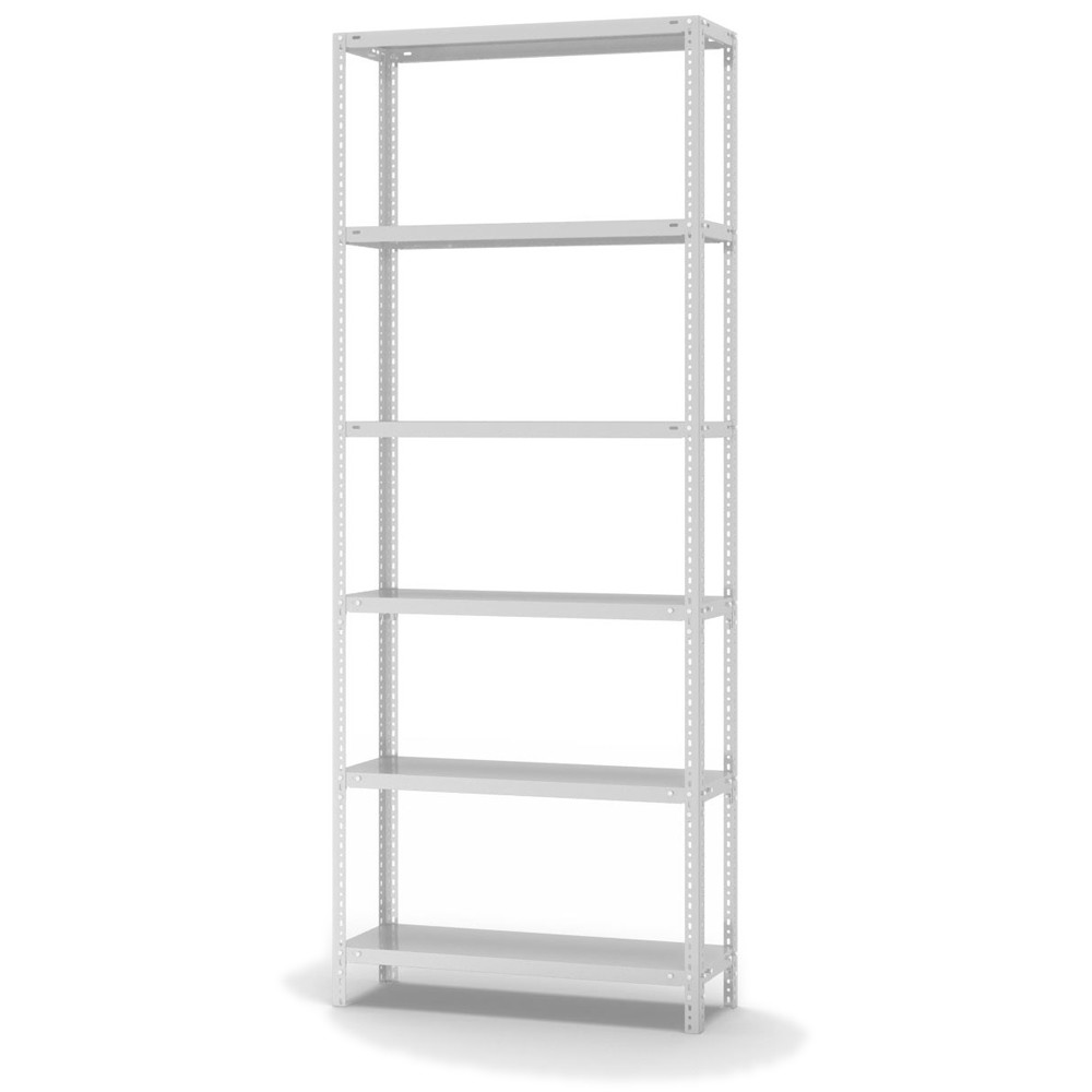 Lagerregal Anbauregal Schraubsystem Höhe: 2500 mm Breite: 1000 mm Tiefe: 300 mm Oberflächen Ebenen: RAL 7035 lichtgrau Oberflächen Stützen: RAL 7035 lichtgrau Anzahl der Fachebenen: 6 Stück Fachlast: 150 kg :: Feldlast: 625 kg Bedienung: Zweiseitig