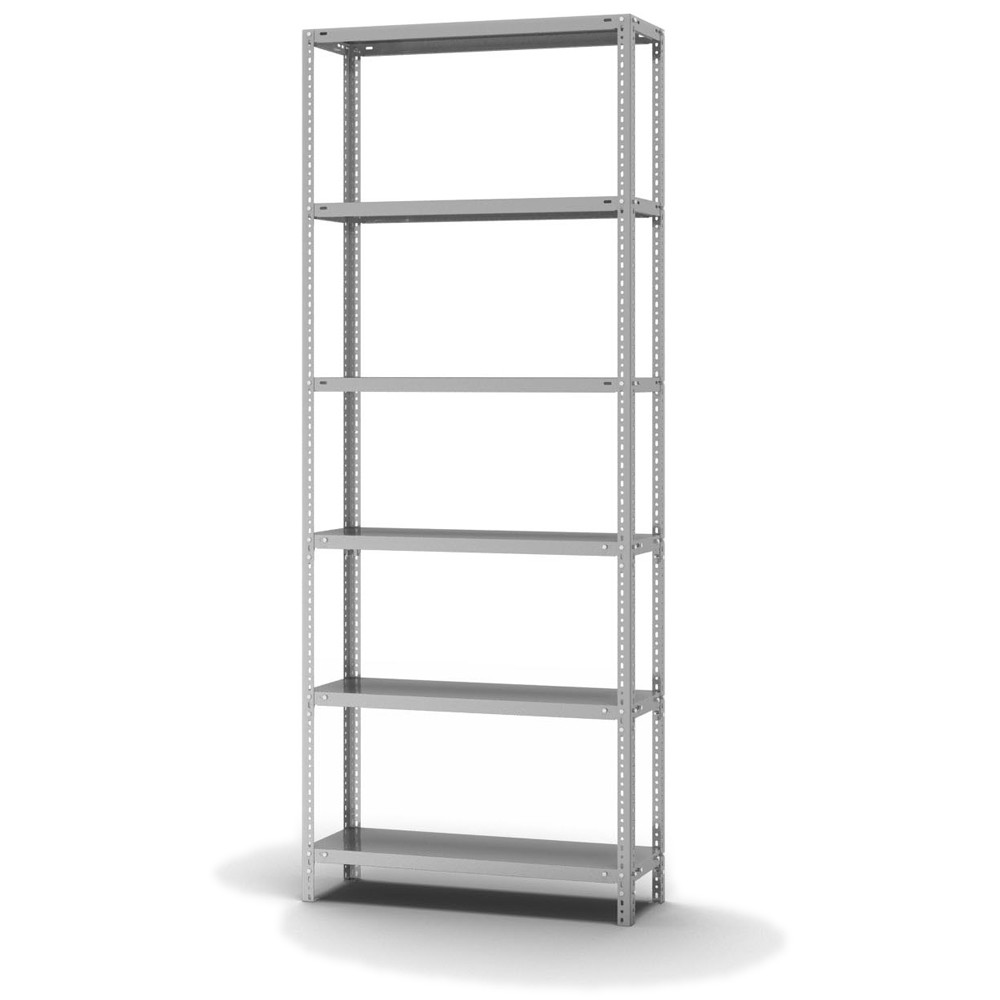 Lagerregal Anbauregal Schraubsystem Höhe: 2500 mm Breite: 1000 mm Tiefe: 300 mm Oberflächen Ebenen: verzinkt Oberflächen Stützen: verzinkt Anzahl der Fachebenen: 6 Stück Fachlast: 150 kg :: Feldlast: 625 kg Bedienung: Zweiseitig