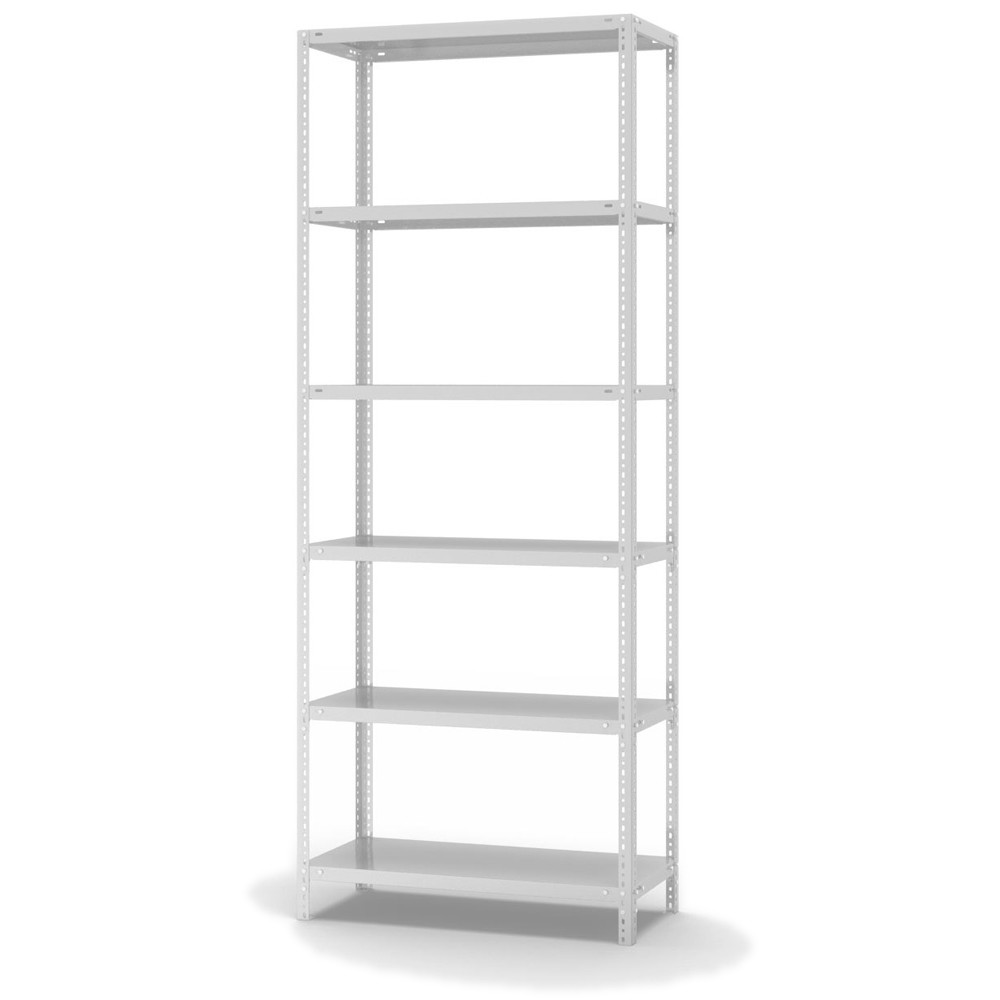 Lagerregal Anbauregal Schraubsystem Höhe: 2500 mm Breite: 1000 mm Tiefe: 400 mm Oberflächen Ebenen: RAL 7035 lichtgrau Oberflächen Stützen: RAL 7035 lichtgrau Anzahl der Fachebenen: 6 Stück Fachlast: 150 kg :: Feldlast: 625 kg Bedienung: Zweiseitig