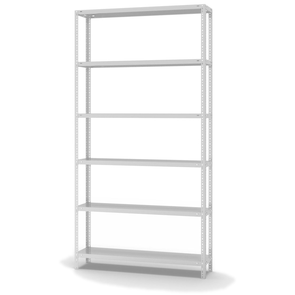 Lagerregal Anbauregal Schraubsystem Höhe: 2500 mm Breite: 1000 mm Tiefe: 300 mm Oberflächen Ebenen: RAL 7035 lichtgrau Oberflächen Stützen: RAL 7035 lichtgrau Anzahl der Fachebenen: 6 Stück Fachlast: 150 kg :: Feldlast: 625 kg Bedienung: Zweiseitig