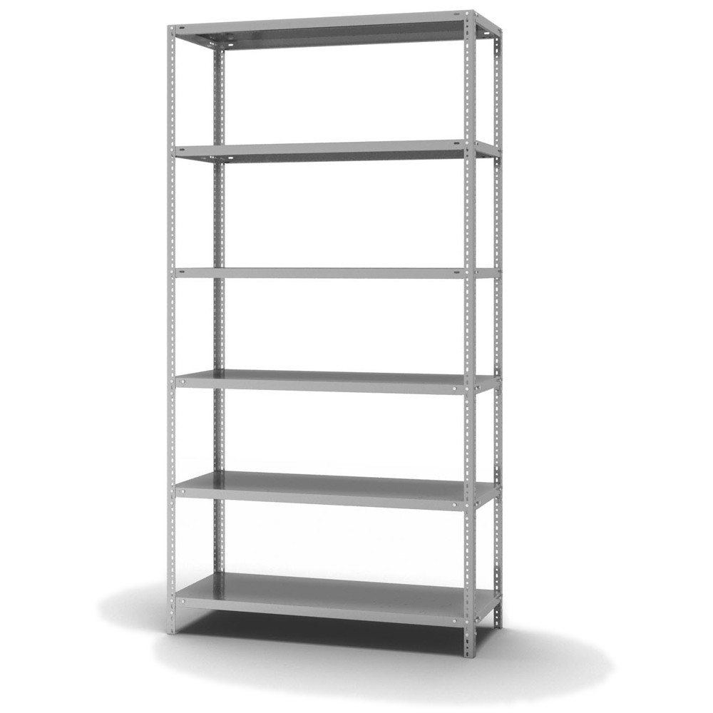Lagerregal Grundregal Schraubsystem Höhe: 2500 mm Breite: 1000 mm Tiefe: 500 mm Oberflächen Ebenen: verzinkt Oberflächen Stützen: verzinkt Anzahl der Fachebenen: 6 Stück Fachlast: 150 kg :: Feldlast: 625 kg Bedienung: Zweiseitig