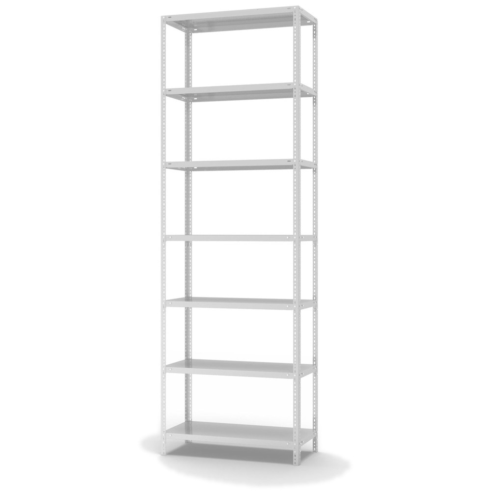 Lagerregal Anbauregal Schraubsystem Höhe: 3000 mm Breite: 1000 mm Tiefe: 400 mm Oberflächen Ebenen: RAL 7035 lichtgrau Oberflächen Stützen: RAL 7035 lichtgrau Anzahl der Fachebenen: 7 Stück Fachlast: 150 kg :: Feldlast: 625 kg Bedienung: Zweiseitig