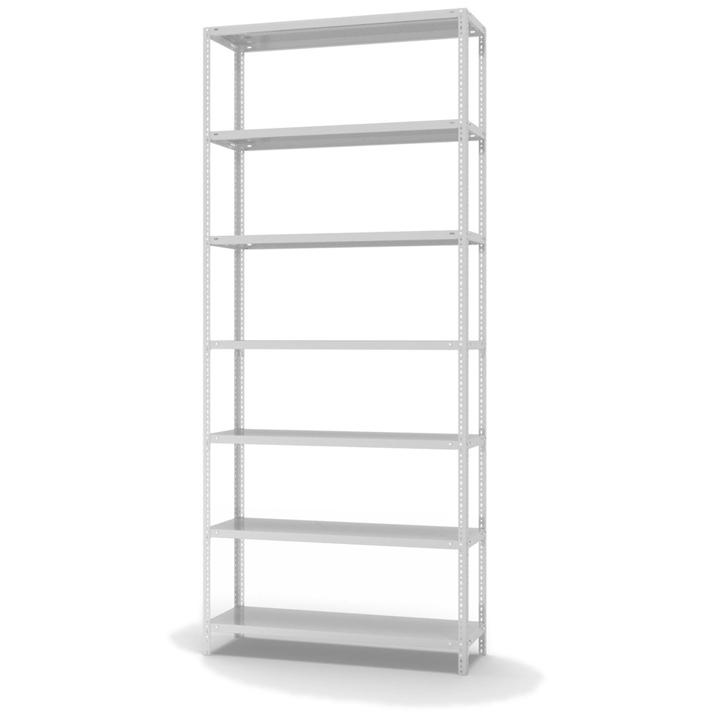 Lagerregal Anbauregal Schraubsystem Höhe: 3000 mm Breite: 1000 mm Tiefe: 400 mm Oberflächen Ebenen: RAL 7035 lichtgrau Oberflächen Stützen: RAL 7035 lichtgrau Anzahl der Fachebenen: 7 Stück Fachlast: 150 kg :: Feldlast: 625 kg Bedienung: Zweiseitig