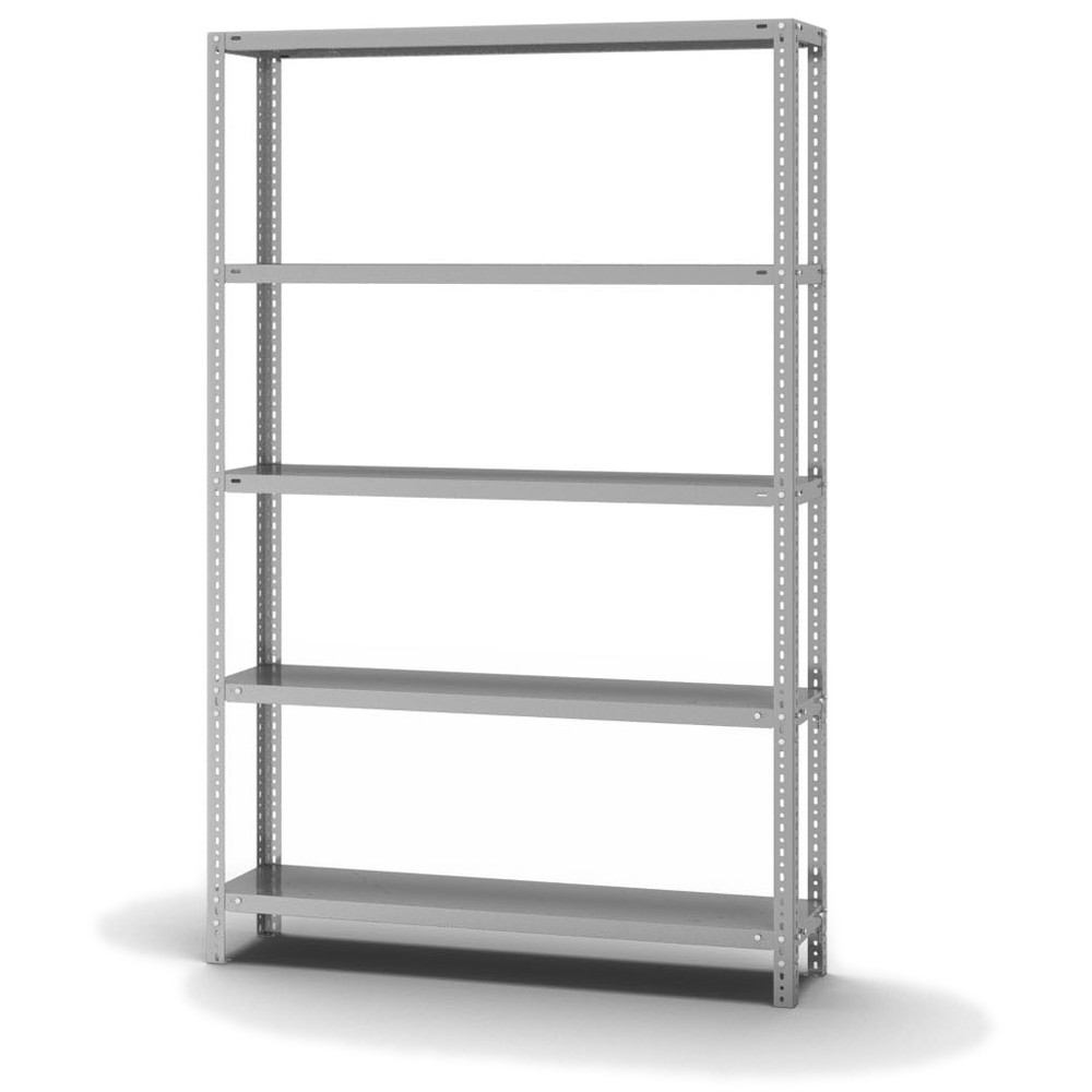 Lagerregal Grundregal Schraubsystem Höhe: 2000 mm Breite: 1000 mm Tiefe: 300 mm Oberflächen Ebenen: verzinkt Oberflächen Stützen: verzinkt Anzahl der Fachebenen: 5 Stück Fachlast: 225 kg :: Feldlast: 1125 kg Bedienung: Zweiseitig