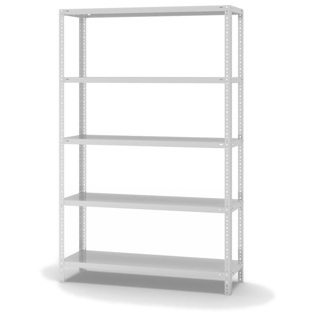 Lagerregal Grundregal Schraubsystem Höhe: 2000 mm Breite: 1000 mm Tiefe: 400 mm Oberflächen Ebenen: RAL 7035 lichtgrau Oberflächen Stützen: RAL 7035 lichtgrau Anzahl der Fachebenen: 5 Stück Fachlast: 225 kg :: Feldlast: 1125 kg Bedienung: Zweiseitig