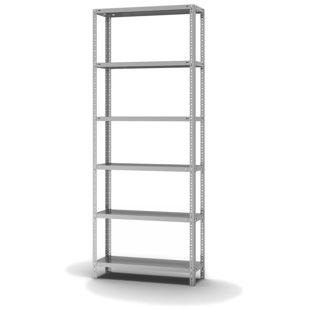 Lagerregal Anbauregal Schraubsystem Höhe: 2500 mm Breite: 1000 mm Tiefe: 300 mm Oberflächen Ebenen: verzinkt Oberflächen Stützen: verzinkt Anzahl der Fachebenen: 6 Stück Fachlast: 225 kg :: Feldlast: 1350 kg Bedienung: Zweiseitig