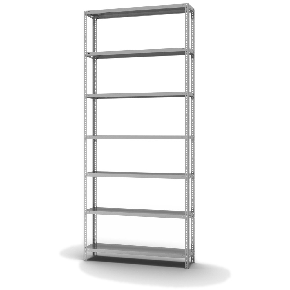 Lagerregal Anbauregal Schraubsystem Höhe: 3000 mm Breite: 1000 mm Tiefe: 300 mm Oberflächen Ebenen: verzinkt Oberflächen Stützen: verzinkt Anzahl der Fachebenen: 7 Stück Fachlast: 225 kg :: Feldlast: 1575 kg Bedienung: Zweiseitig