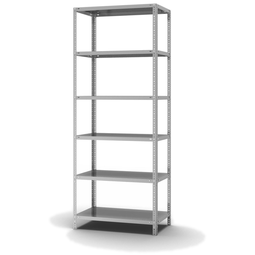 Lagerregal Grundregal Schraubsystem Höhe: 2500 mm Breite: 1300 mm Tiefe: 500 mm Oberflächen Ebenen: verzinkt Oberflächen Stützen: verzinkt Anzahl der Fachebenen: 6 Stück Fachlast: 300 kg :: Feldlast: 625 kg Bedienung: Zweiseitig