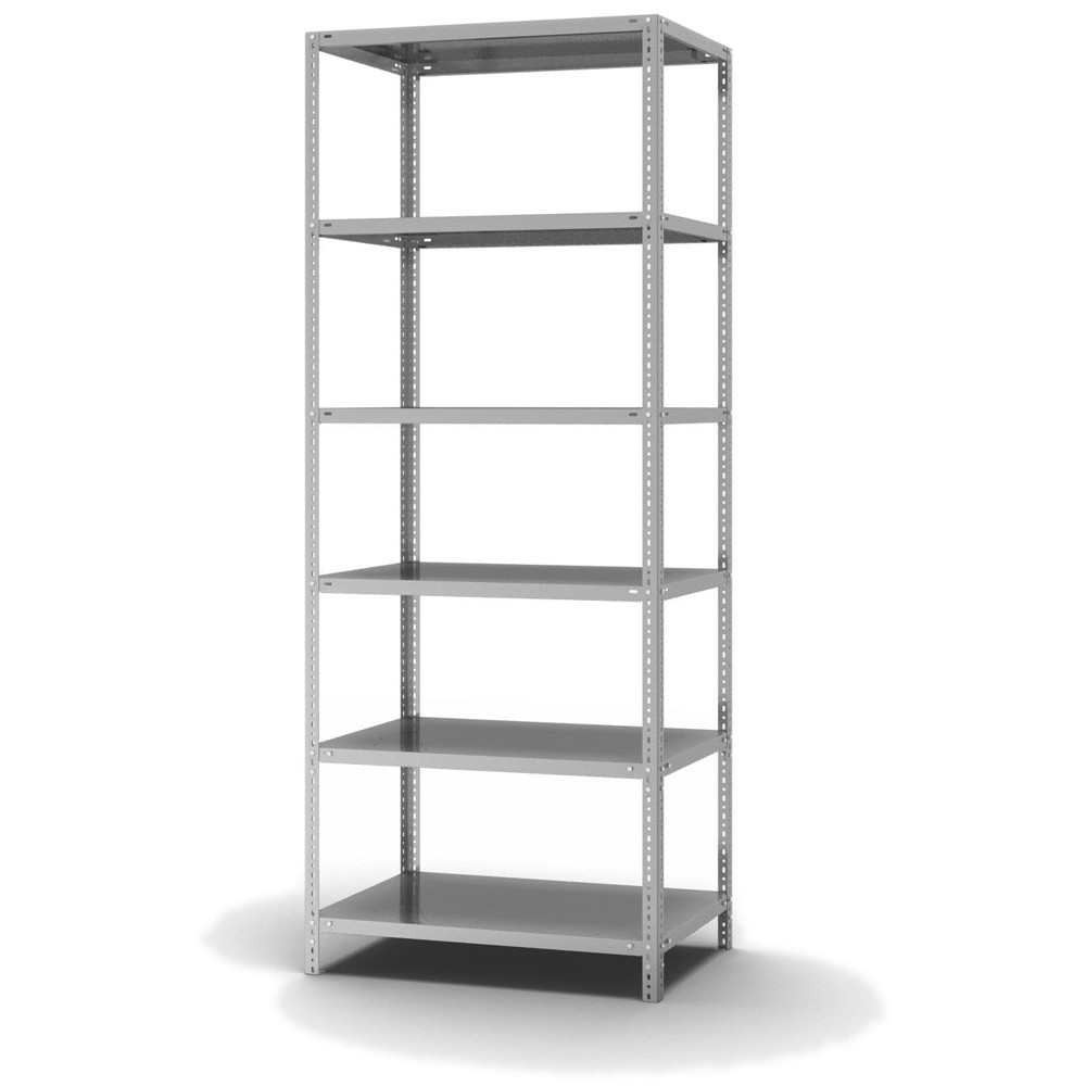 Lagerregal Grundregal Schraubsystem Höhe: 2500 mm Breite: 1300 mm Tiefe: 600 mm Oberflächen Ebenen: verzinkt Oberflächen Stützen: verzinkt Anzahl der Fachebenen: 6 Stück Fachlast: 300 kg :: Feldlast: 625 kg Bedienung: Zweiseitig
