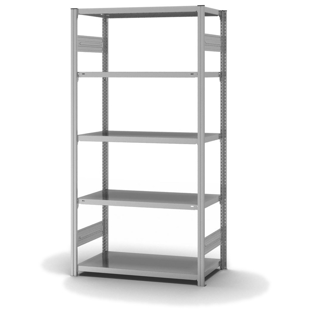 Fachbodenregal Anbauregal Stecksystem Höhe: 2000 mm, Breite: 1000 mm, Tiefe: 500 mm Oberflächen Ebenen: verzinkt / Oberflächen Stützen: verzinkt Anzahl der Fachebenen: 5 Stück Fachlast: 230 kg :: Feldlast: 1600 kg Bedienung: Zweiseitig