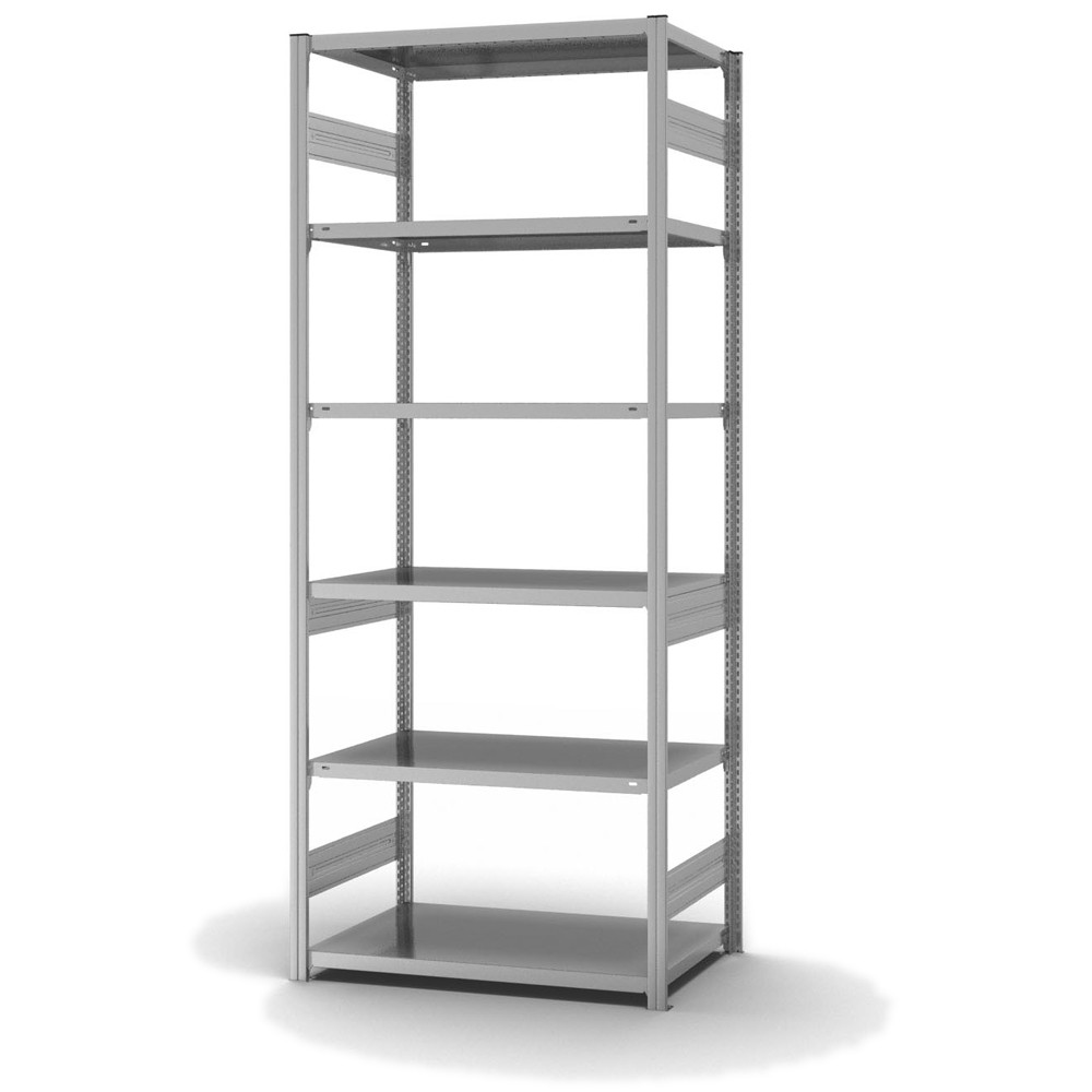 Fachbodenregal Anbauregal Stecksystem Höhe: 2500 mm, Breite: 1000 mm, Tiefe: 600 mm Oberflächen Ebenen: verzinkt / Oberflächen Stützen: verzinkt Anzahl der Fachebenen: 6 Stück Fachlast: 240 kg :: Feldlast: 1800 kg Bedienung: Zweiseitig