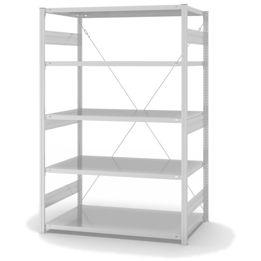 Lagerregal Anbauregal Stecksystem Höhe: 2000 mm Breite: 750 (760) mm Tiefe: 800 (835) mm Oberflächen Ebenen: RAL 7035 lichtgrau Oberflächen Stützen: RAL 7035 lichtgrau Anzahl der Fachebenen: 5 Stück Fachlast: 300 kg :: Feldlast: 1600 kg Bedienung: Einseitig