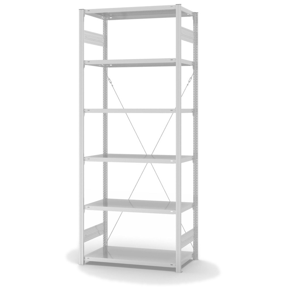 Fachbodenregal Stecksystem Grundregal eins. Nutzung 2500x750x500, lichtgrau, 150 KG Tragkraft