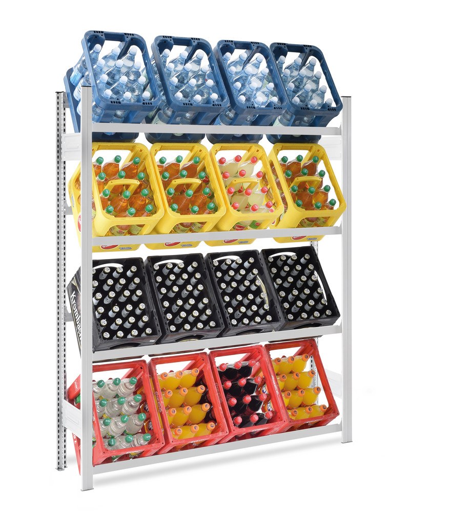 Getränkekistenregal Grundregal 1750x1500x300, lichtgrau, 4 Ebenen