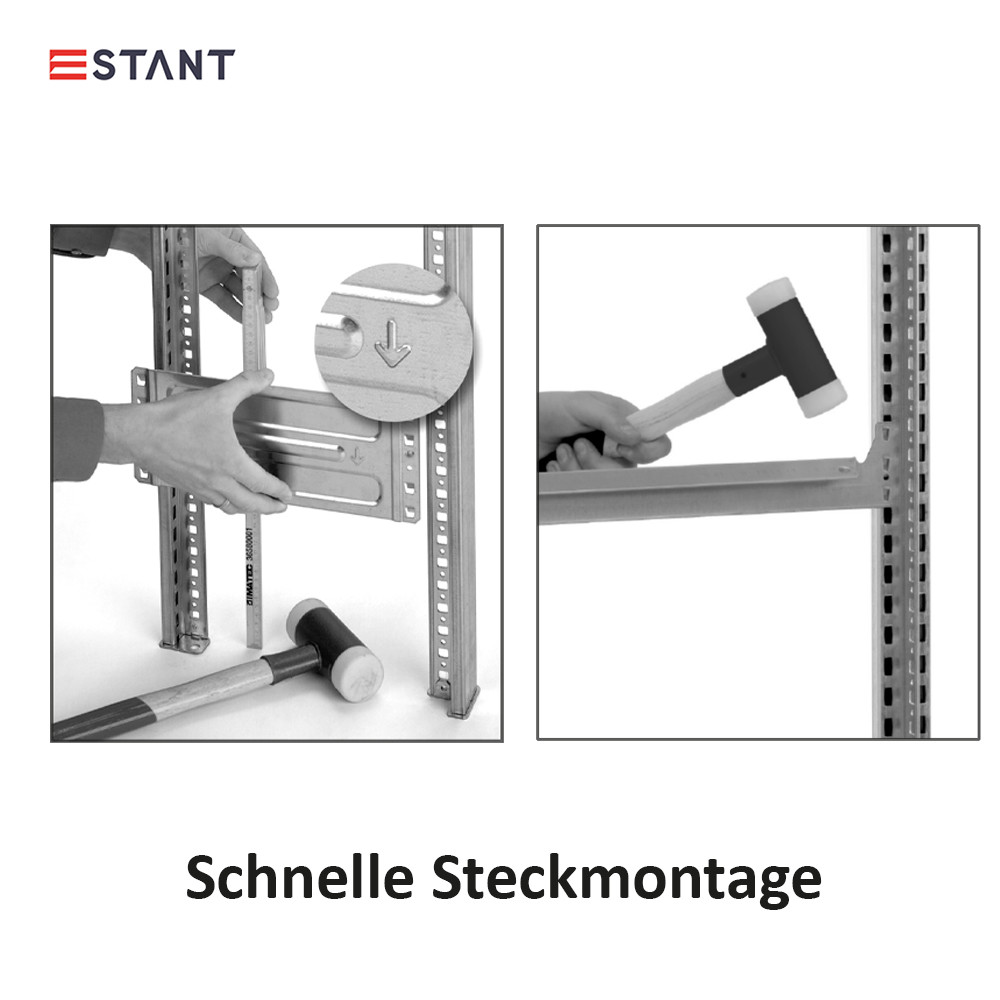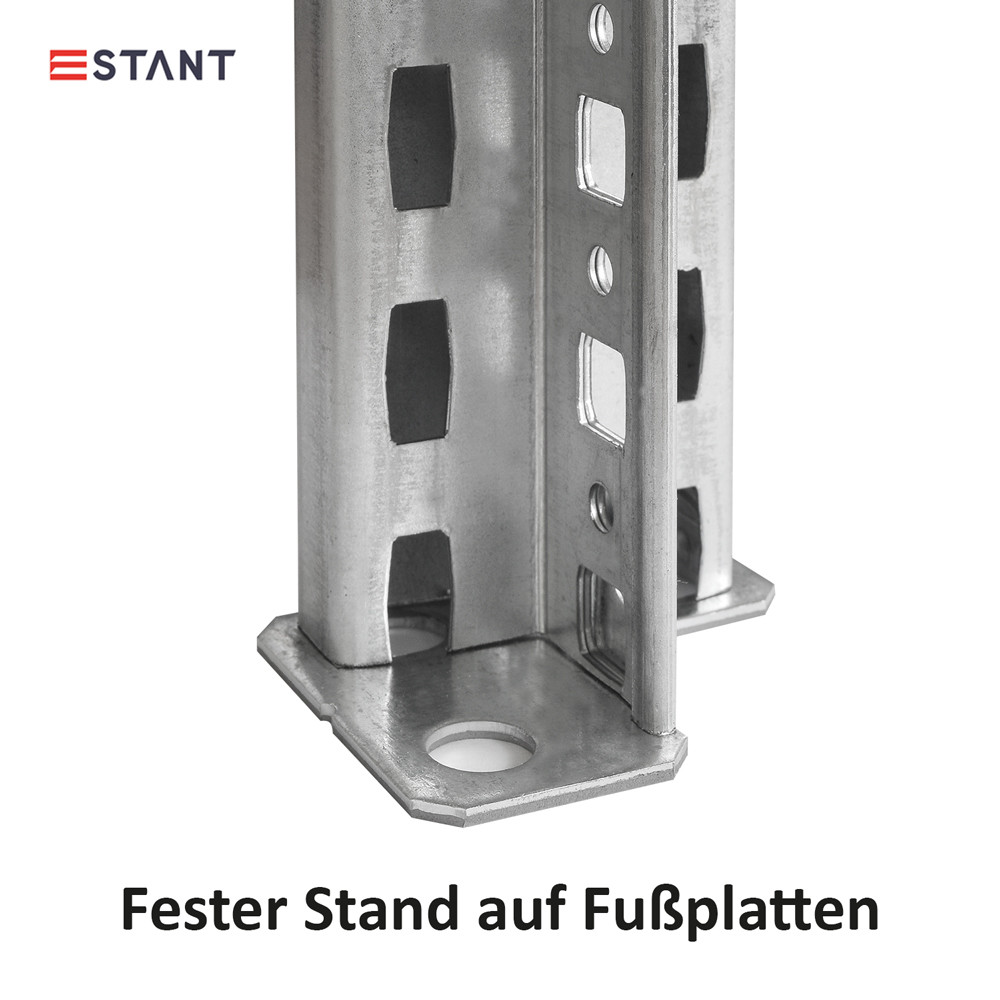 Getränkekistenregal Grundregal Stecksystem Höhe: 1200 mm Breite: 1000 (1060) mm Tiefe: 300 (335) mm Oberflächen Ebenen: verzinkt Oberflächen Stützen: verzinkt Anzahl der Fachebenen: 2 Stück Anzahl der Fachböden: 1 Stück Fachlast: 100 kg :: Feldlast: 300 kg Bedienung: Einseitig Zusatzinfo: Für 6 Getränkekisten