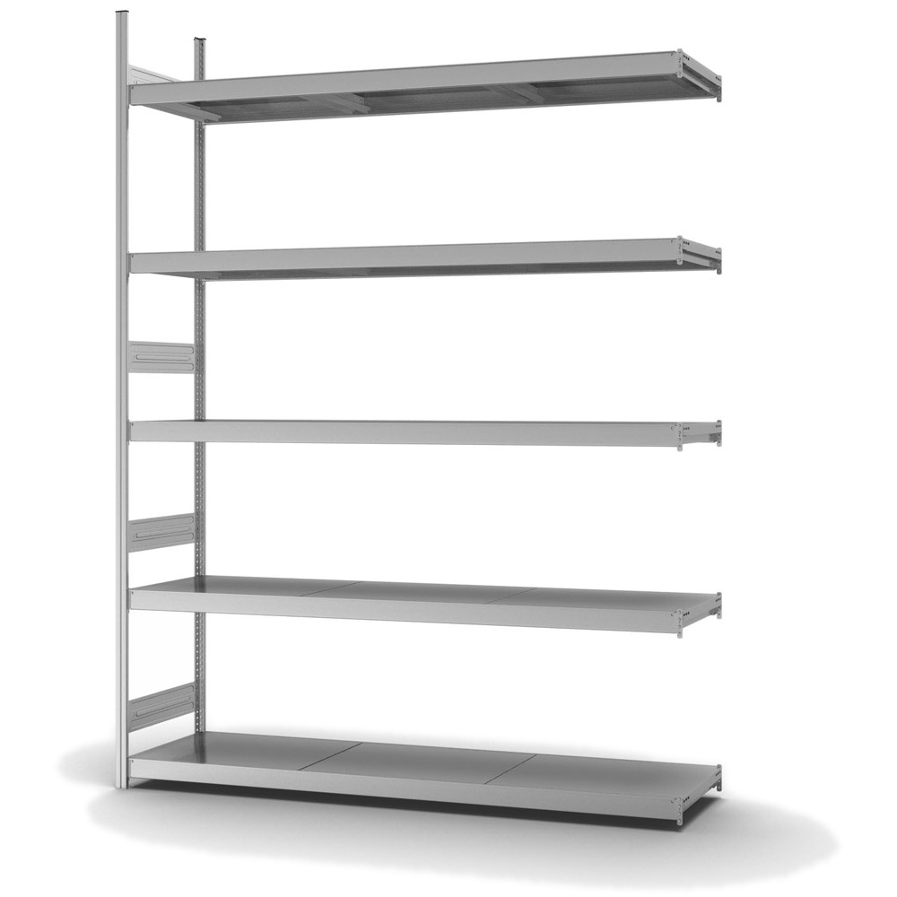 Grossfachregal Anbauregal 2000x2500x500, verzinkt, mit Stahlböden, 350 KG Tragkraft