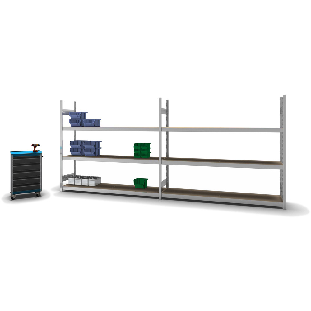 Grossfachregal Anbauregal 2500x1500x500, verzinkt, mit Spanplatten, 350 KG Tragkraft