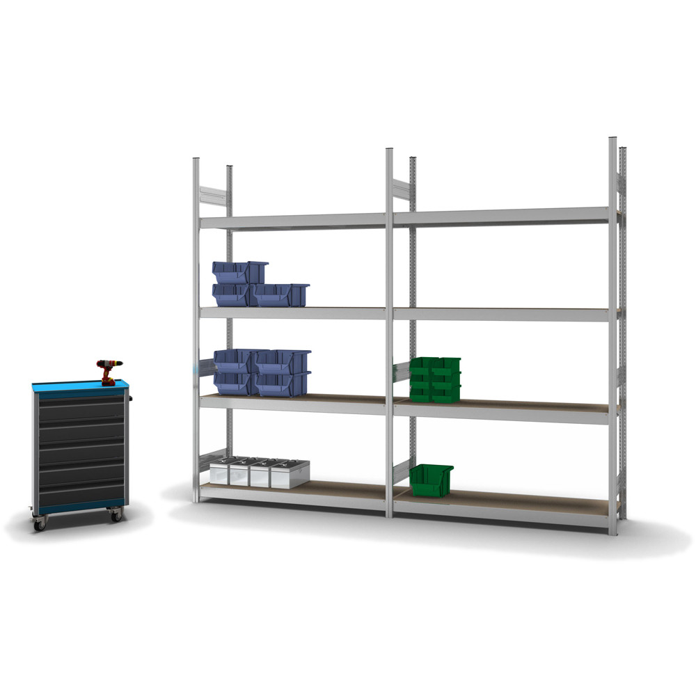 Grossfachregal Anbauregal 2500x1500x400, verzinkt, mit Spanplatten, 350 KG Tragkraft