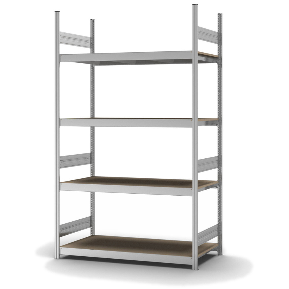 Grossfachregal Anbauregal 2000x1500x600, verzinkt, mit Spanplatten, 350 KG Tragkraft