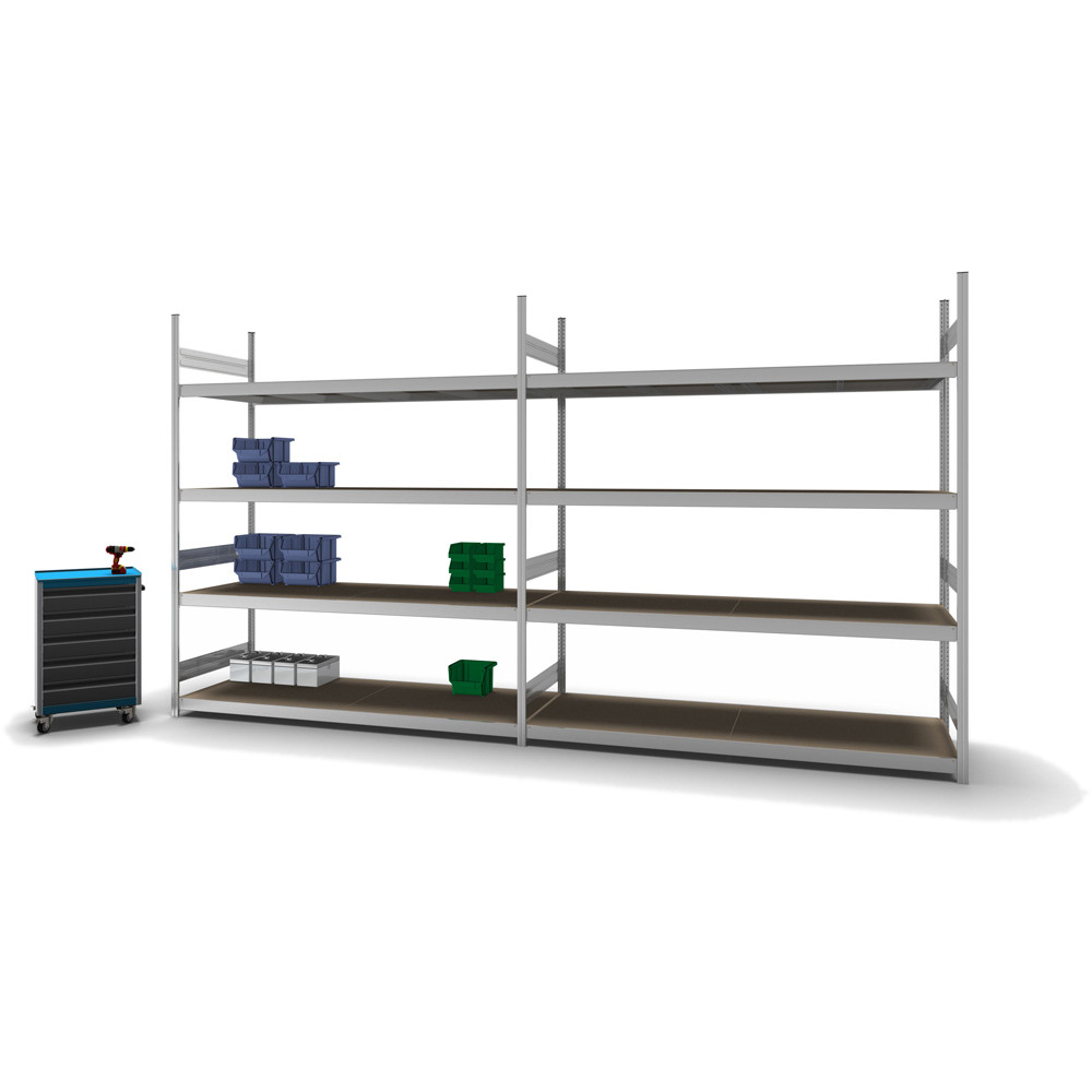 Grossfachregal Anbauregal 2500x1500x800, verzinkt, mit Spanplatten, 350 KG Tragkraft