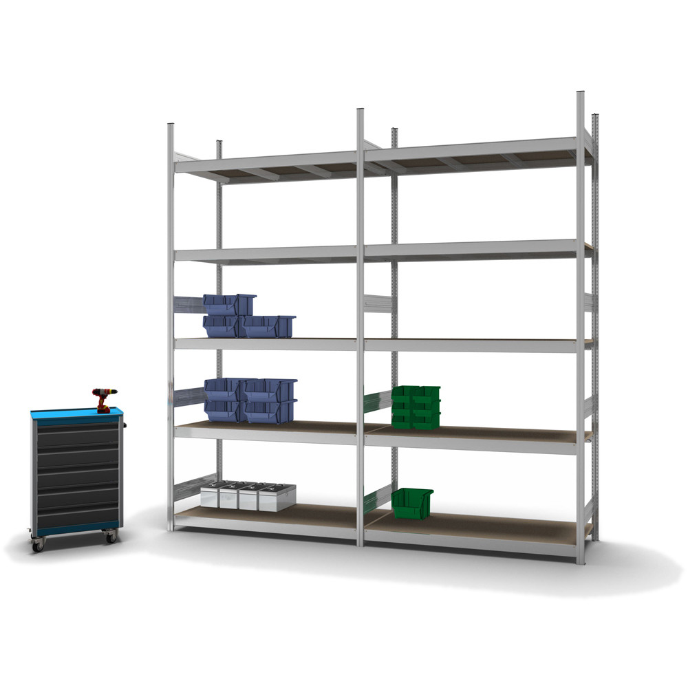 Grossfachregal Anbauregal 2000x2500x600, verzinkt, mit Spanplatten, 350 KG Tragkraft
