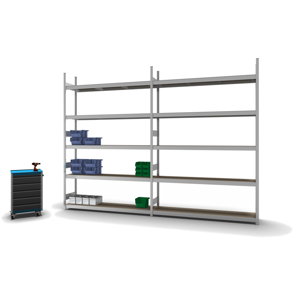 Grossfachregal Anbauregal 2000x2500x400, verzinkt, mit Spanplatten, 350 KG Tragkraft