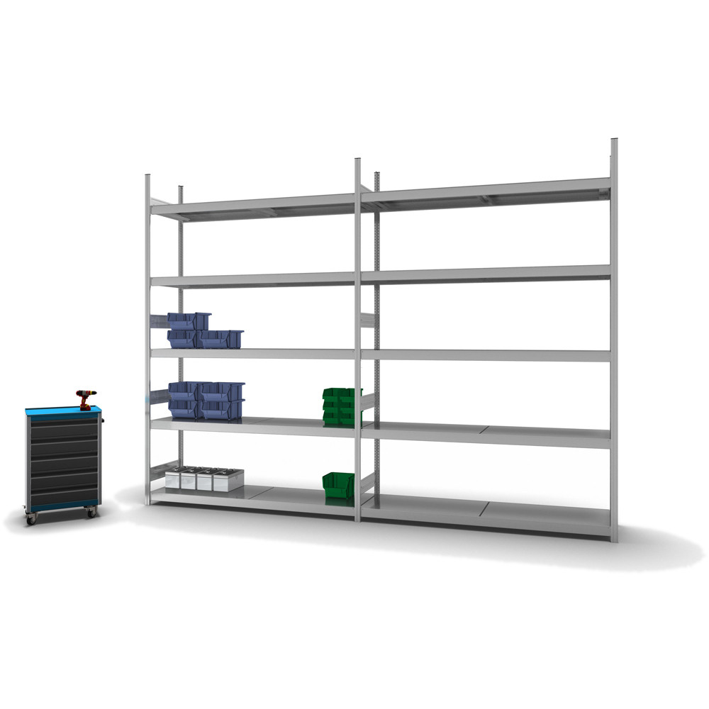 Grossfachregal Anbauregal 2000x2500x500, verzinkt, mit Stahlböden, 350 KG Tragkraft