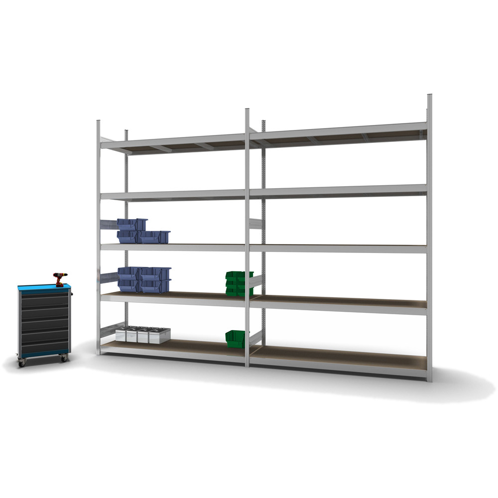 Grossfachregal Anbauregal 2000x2500x600, verzinkt, mit Spanplatten, 350 KG Tragkraft