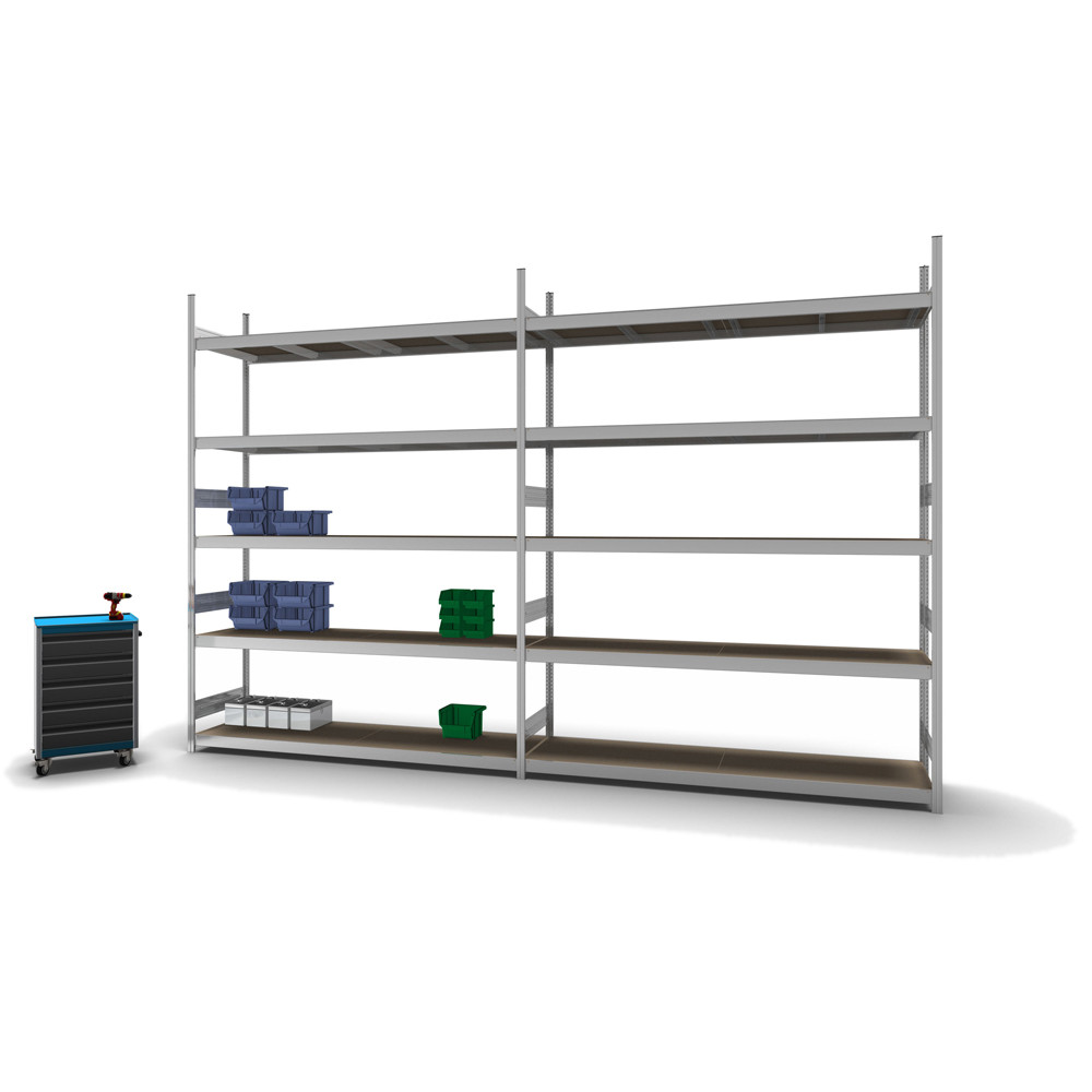 Grossfachregal Anbauregal 2000x2500x600, verzinkt, mit Spanplatten, 350 KG Tragkraft