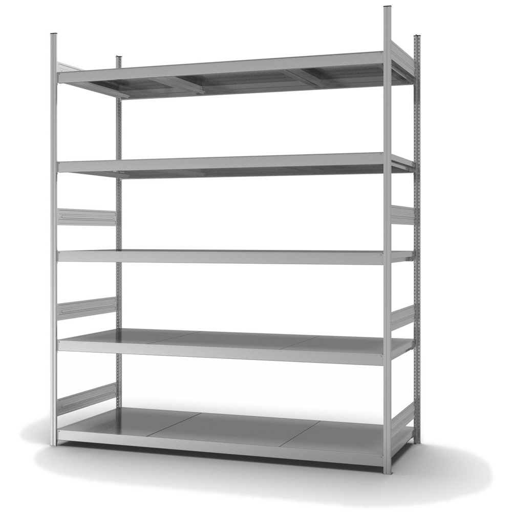 Grossfachregal Anbauregal 2500x2000x800, verzinkt, mit Stahlböden, 350 KG Tragkraft